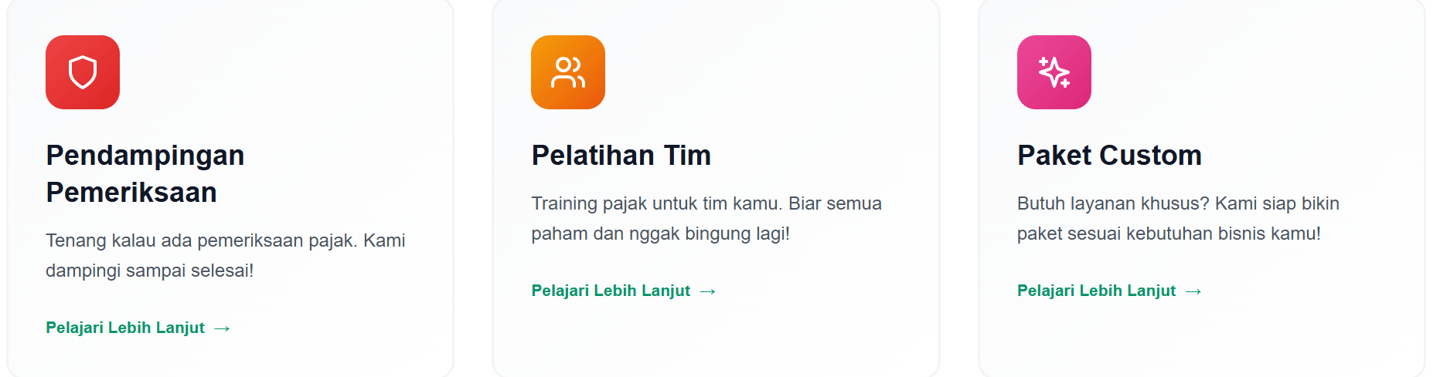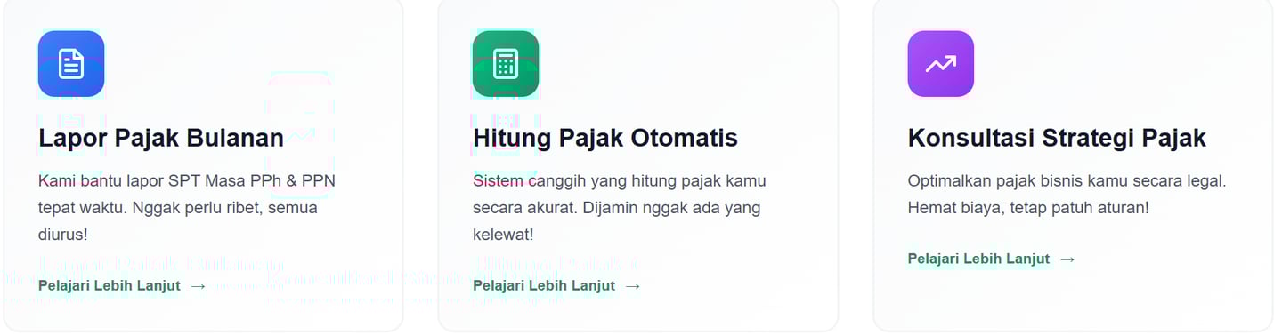 Fokus kembangkan bisnis, biar urusan pajak kami yang urus! Konsultasi mudah, harga terjangkau, dan dijamin nggak bikin pusing.